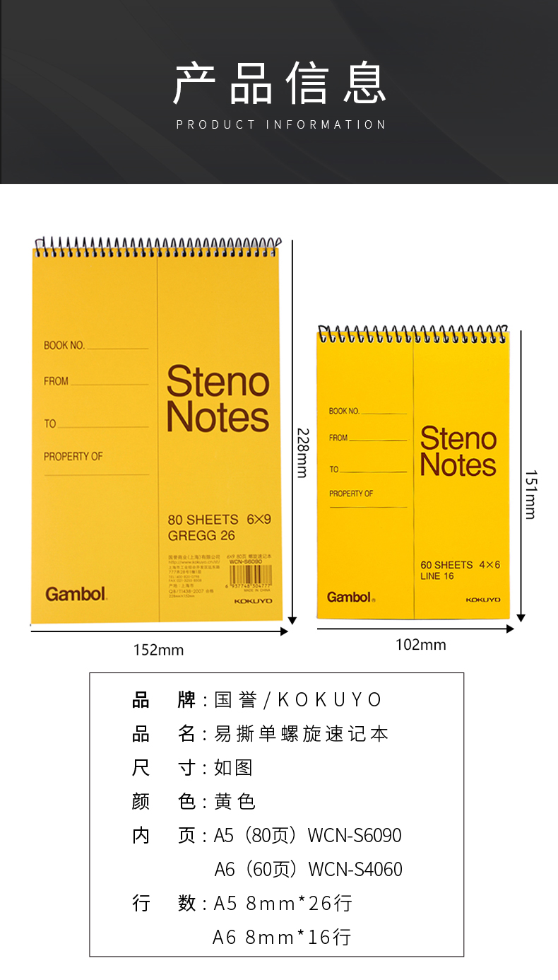 商品名稱:渡邊螺旋豎翻筆記本(速記本)S6090