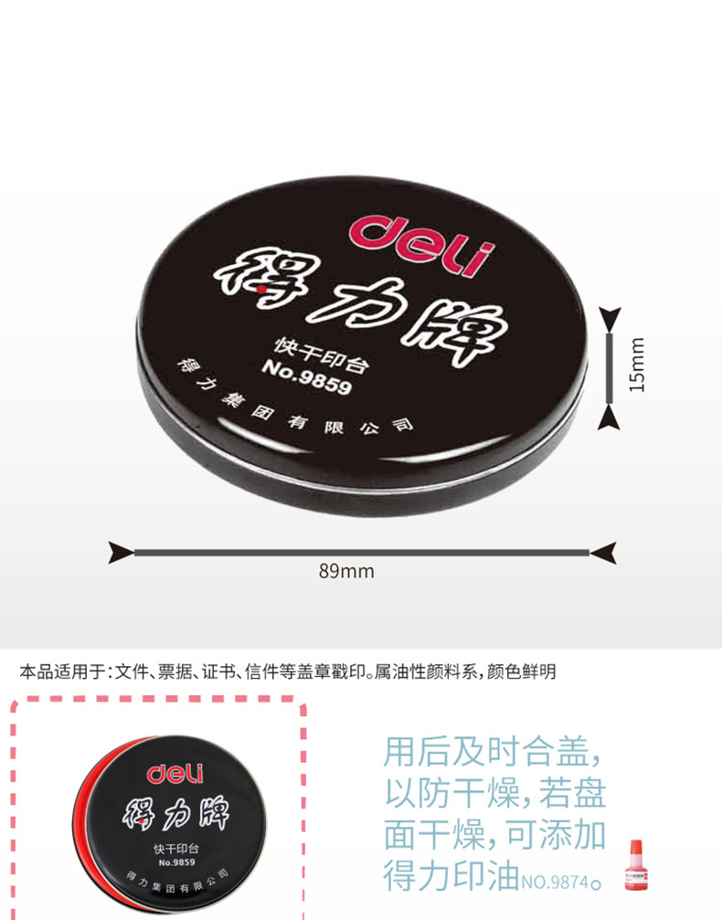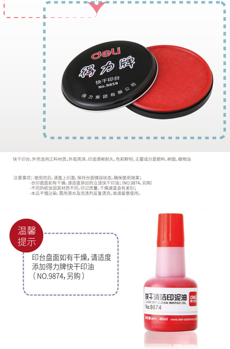 商品名稱:得力快干清潔印泥9859