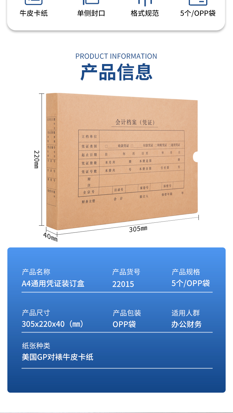 商品名稱:得力10個會計憑證盒子7.1針憑證收納盒a4