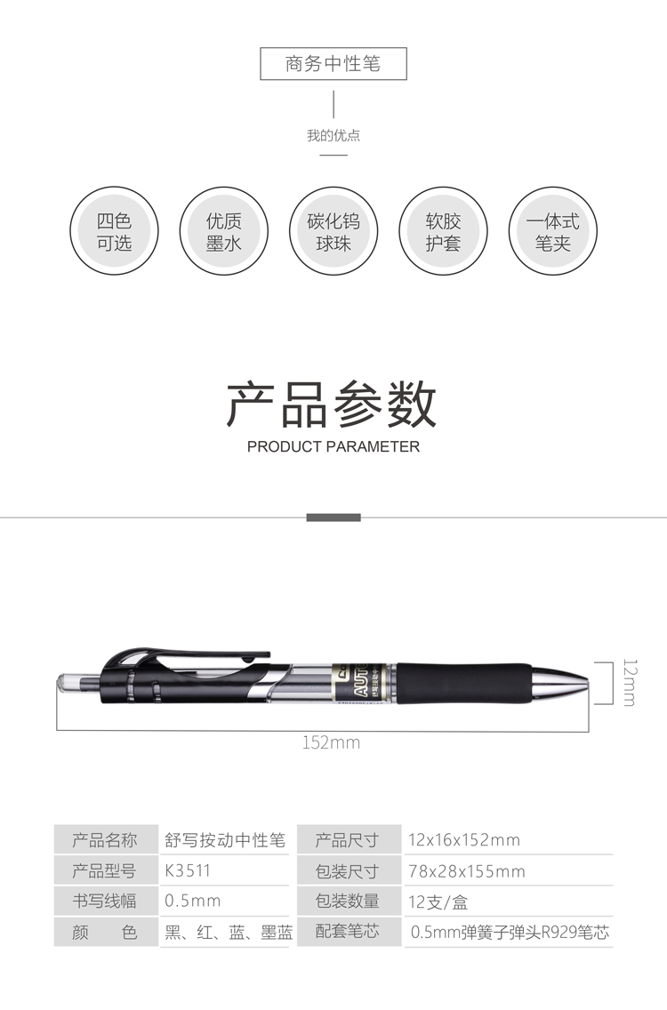 商品名稱:齊心 K3511 舒寫按動(dòng)中性筆 0.5mm匹配筆芯