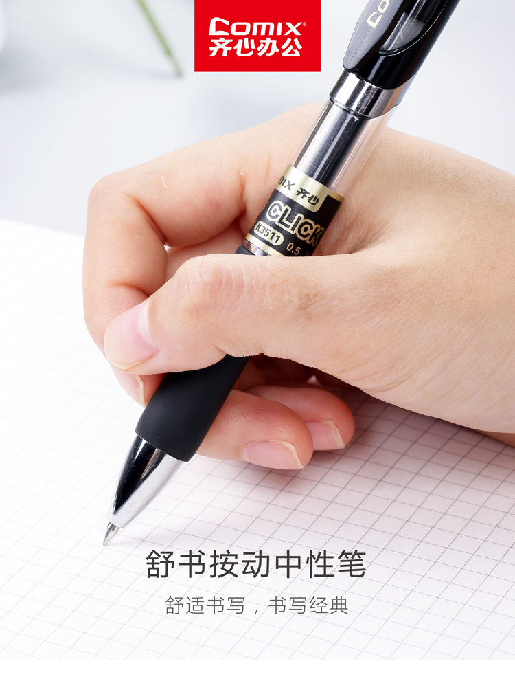 齊心 K3511 舒寫按動(dòng)中性筆 0.5mm匹配筆芯