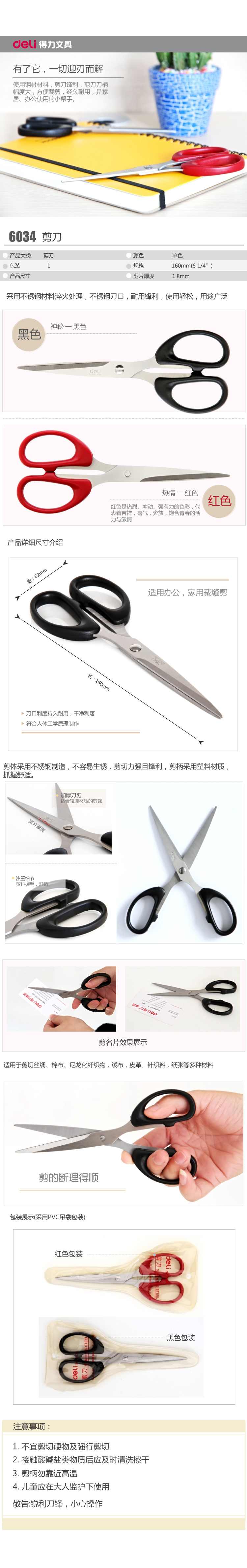商品名稱:得力6034 160MM辦公剪刀