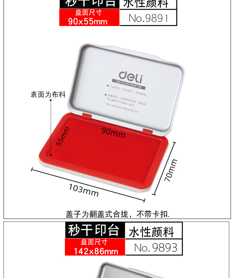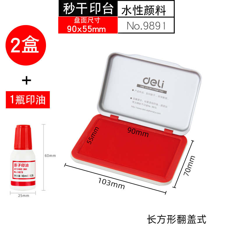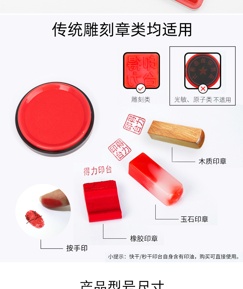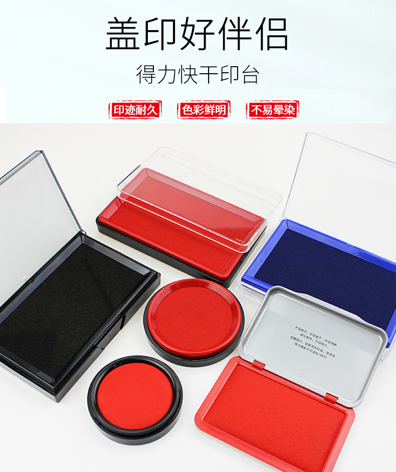 得力快干印臺(tái)紅色印泥盒大號(hào)速干印尼銀行財(cái)務(wù)蓋章用印油