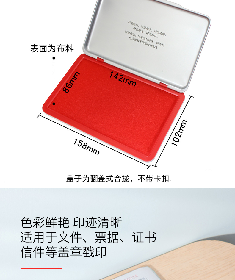 商品名稱:得力快干印臺(tái)紅色印泥盒大號(hào)速干印尼銀行財(cái)務(wù)蓋章用印油