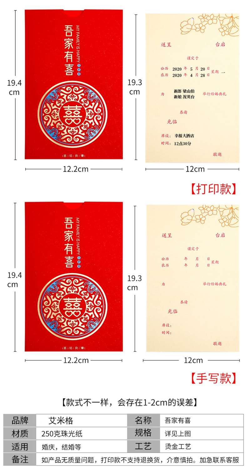 商品名稱:50份裝請?zhí)?020婚禮請柬結婚喜帖創(chuàng)意喜帖婚宴簡約大氣高檔邀請函