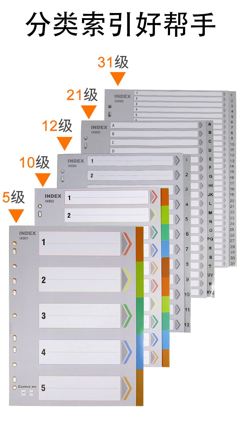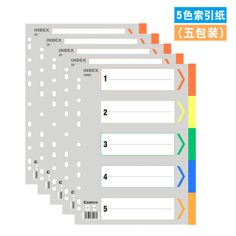 齊心A4索引紙字母數(shù)字隔頁(yè)紙11孔塑料PP彩色分類紙5包