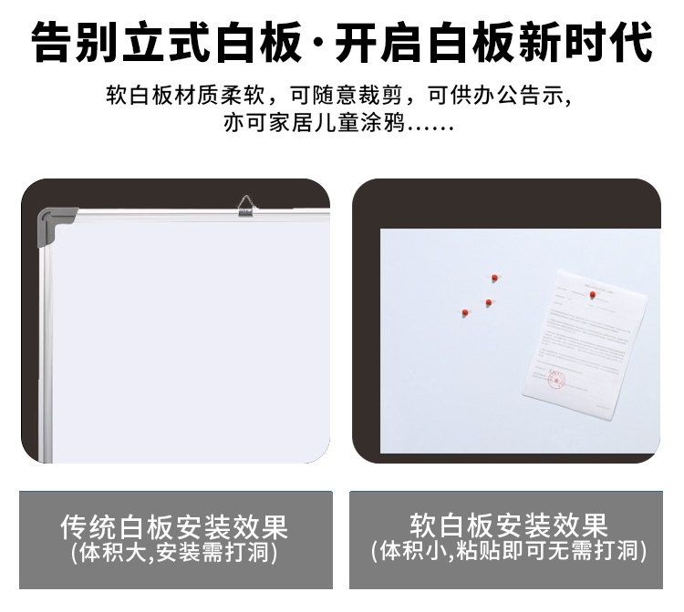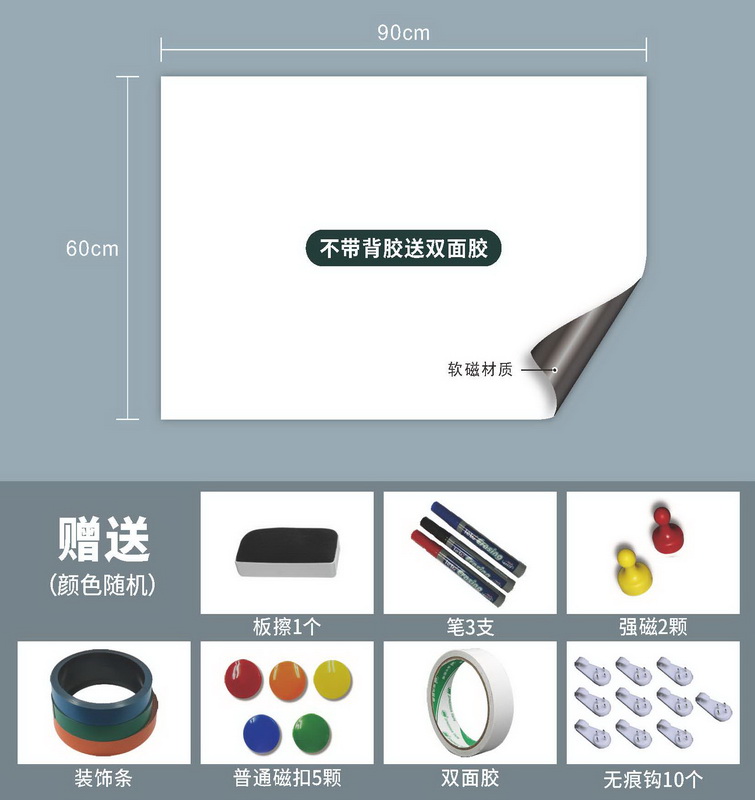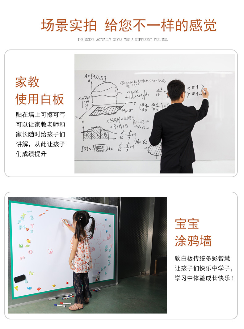 商品名稱(chēng):軟白板墻貼自粘白板涂鴉掛式吸磁鐵寫(xiě)字板黑板教學(xué)