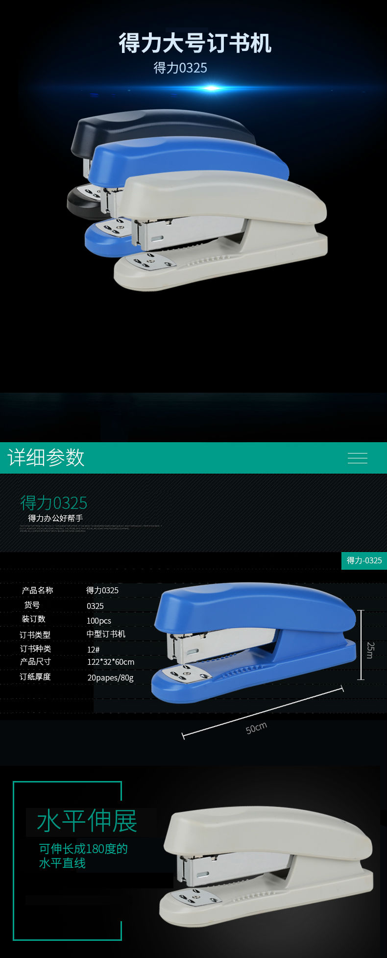 商品名稱:得力(deli)0325訂書機(jī)12號訂書器可訂20頁 辦公用品