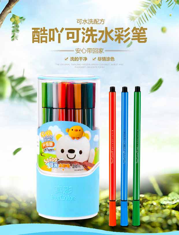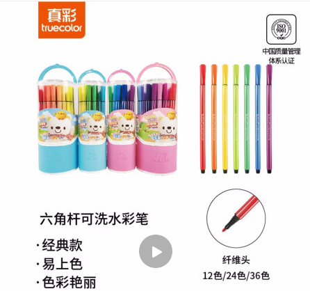 真彩(TrueColor) CWP-2600-24 酷吖可洗水彩筆 24色 小盒裝