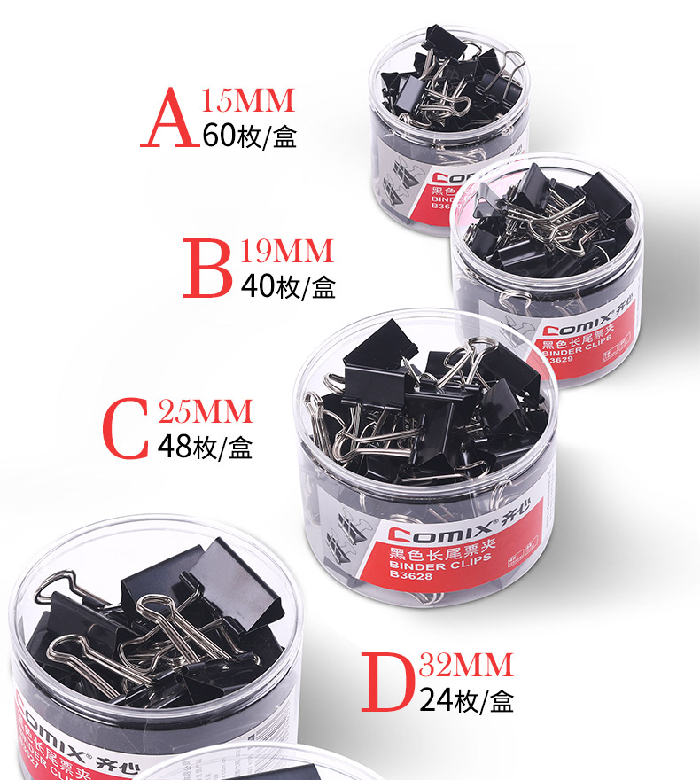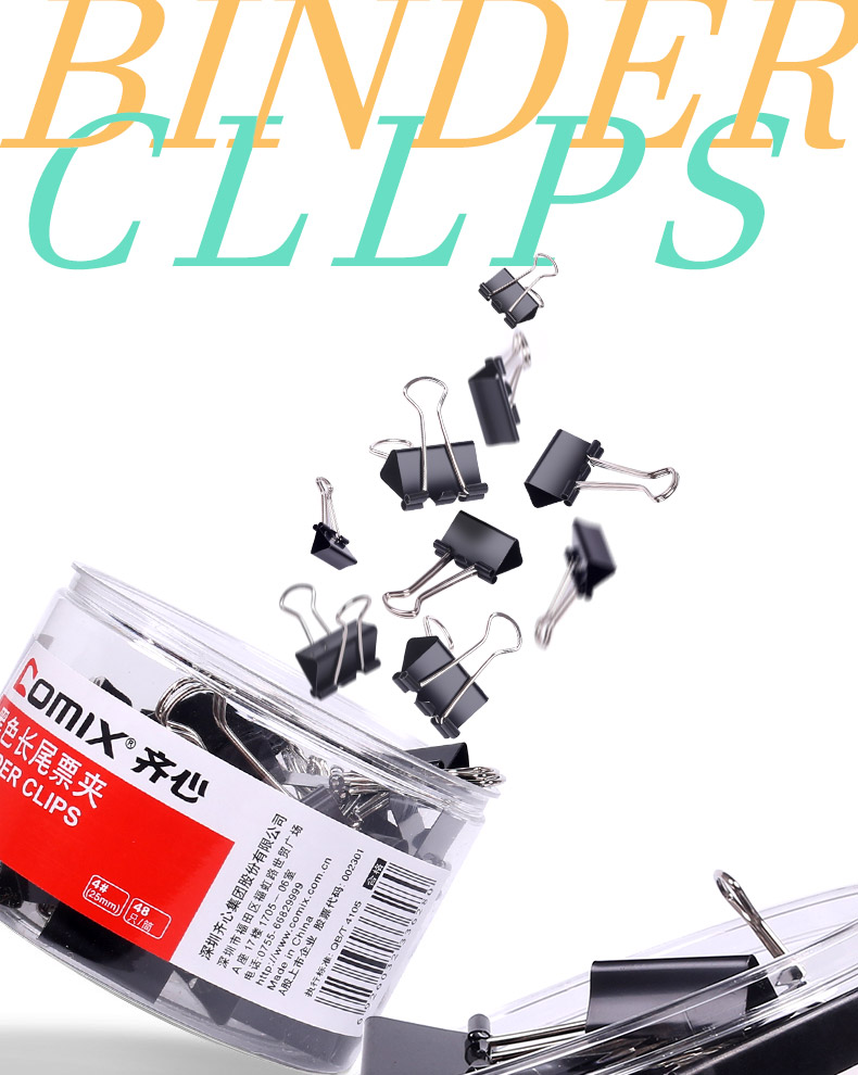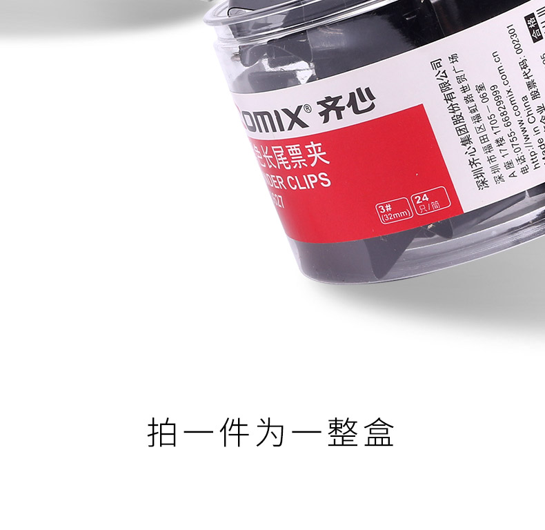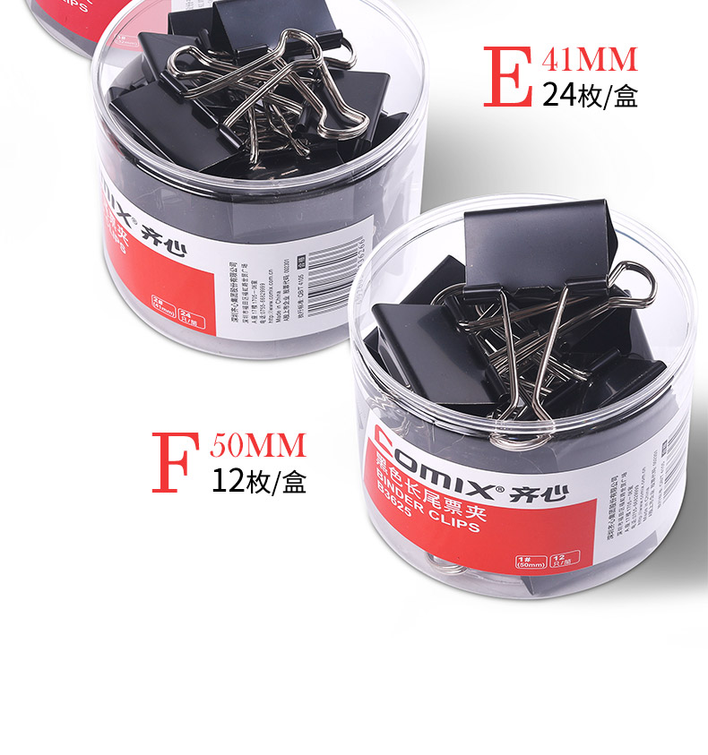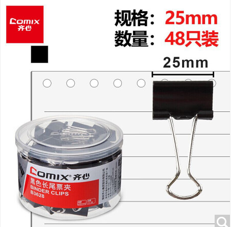 商品名稱:齊心黑色筒裝長尾夾