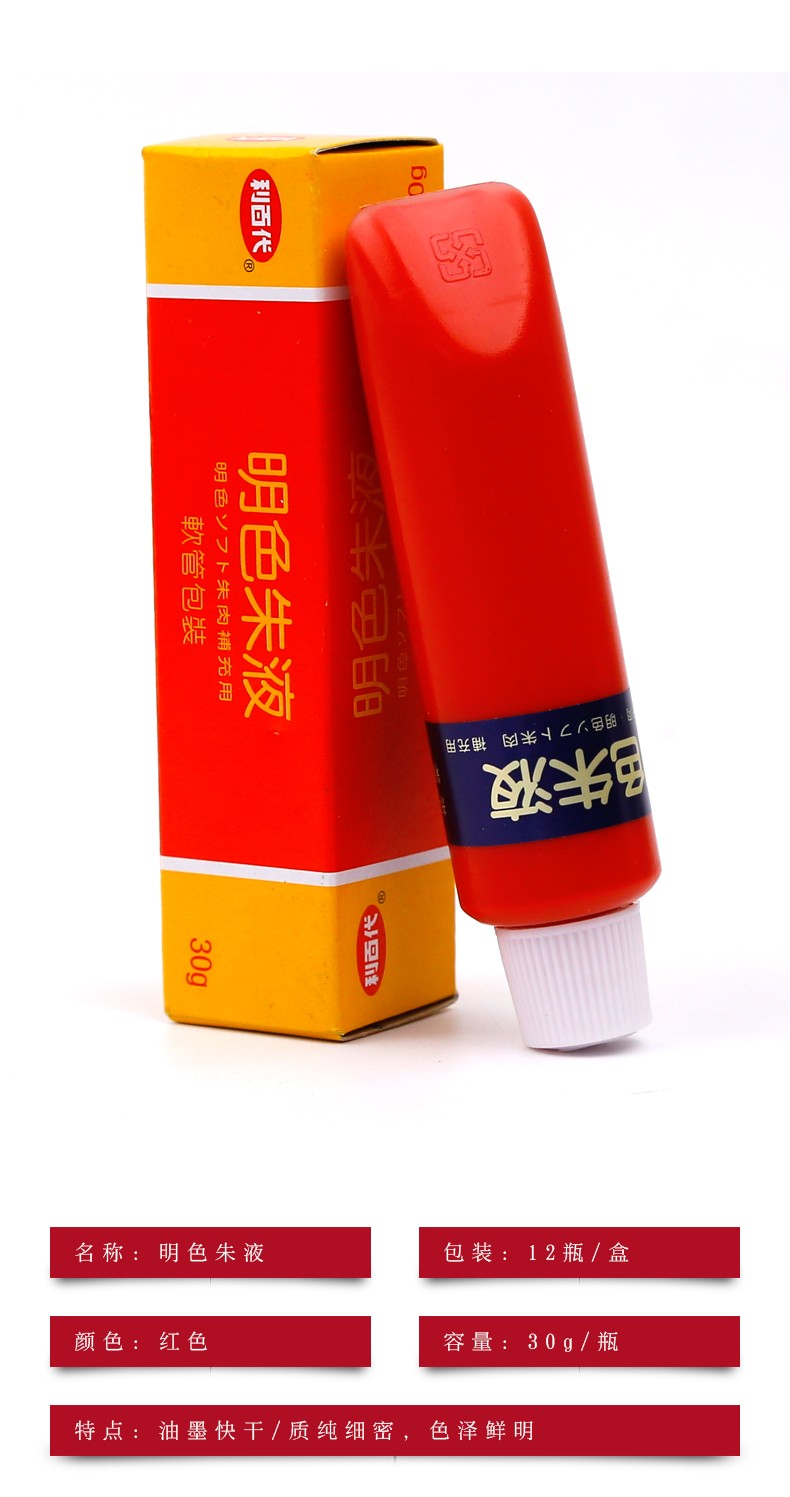商品名稱:利百代明色朱肉液印油30g 明色朱液 紅色進口印油 快干印臺油