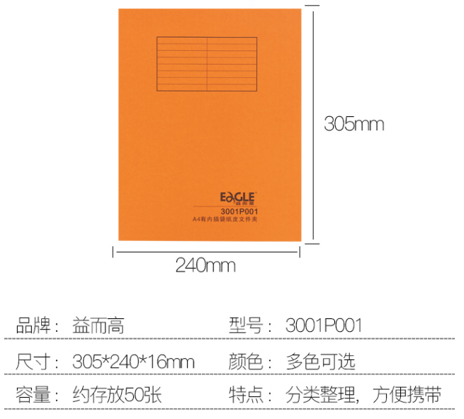商品名稱:益而高紙皮文件夾3001P001