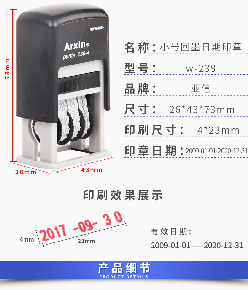 商品名稱:亞信自動(dòng)回墨日期印 回墨可調(diào)日期印章 S-300