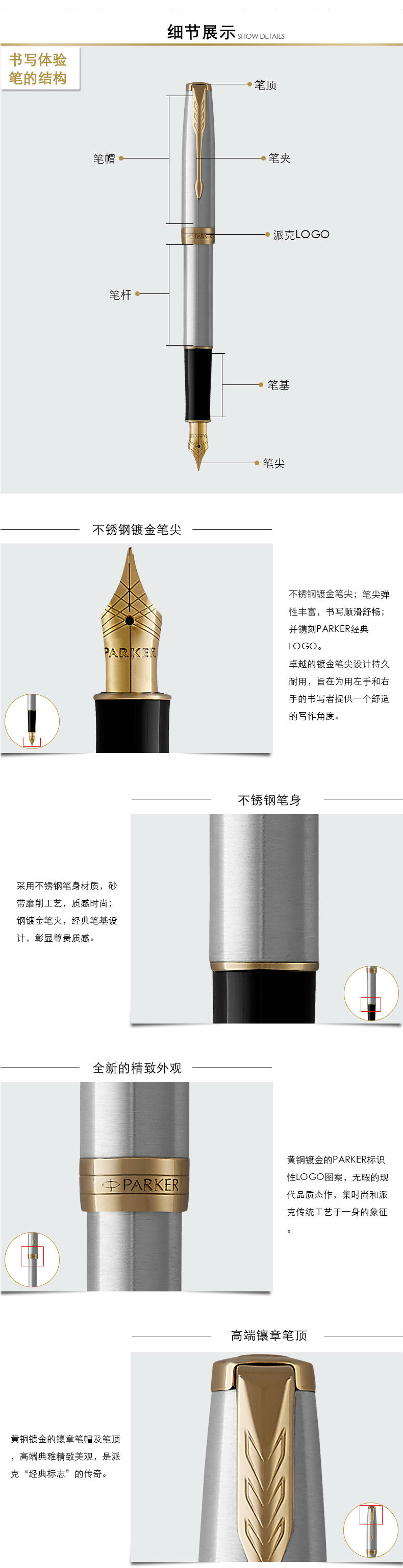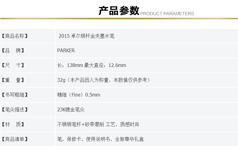 商品名稱:派克卓爾磨砂黑桿金夾