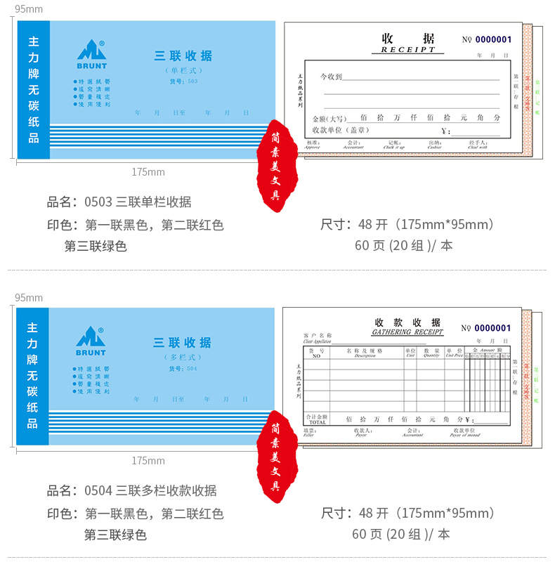 主力無(wú)碳復(fù)寫(xiě)收據(jù)