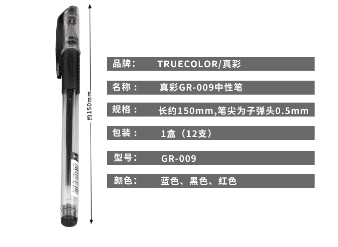 商品名稱:真彩(TRUECOLOR)0.5mm黑色中性筆簽字筆水筆 經(jīng)典辦公子彈頭 金裝大容量