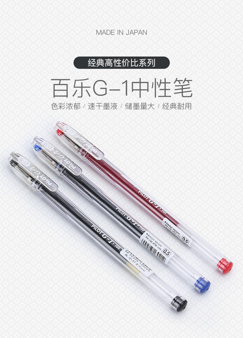 日本百樂(PILOT)BL-G1-5中性筆學(xué)生用大容量考試用水筆辦公簽字筆黑紅藍(lán)0.5mm