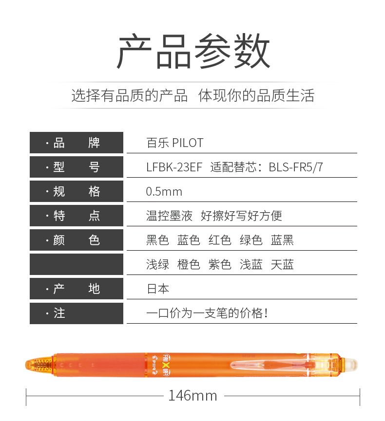 商品名稱(chēng):日本百樂(lè)(PILOT)可擦筆摩磨擦按動(dòng)熱可擦中性筆子彈頭水筆簽字筆0.5mm LFBK-23E