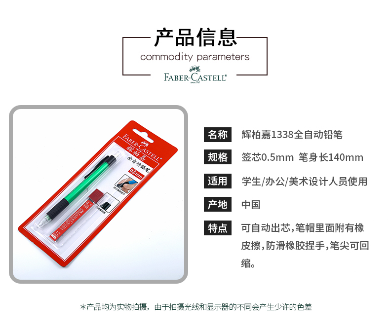 商品名稱:德國輝柏嘉鉛筆 1338全自動鉛筆 0.5mm學(xué)生書寫活動鉛筆+鉛芯套裝學(xué)生設(shè)計(jì)辦公用繪畫美術(shù) 綠色單支德國輝柏嘉鉛筆 1338全自動鉛筆