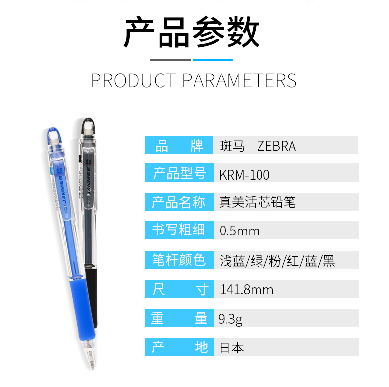 商品名稱:日本ZEBRA斑馬自動鉛筆KRM-100兒童小學生用彩色透明桿寫不易斷芯活動鉛帶橡皮擦頭繪畫美術鉛筆