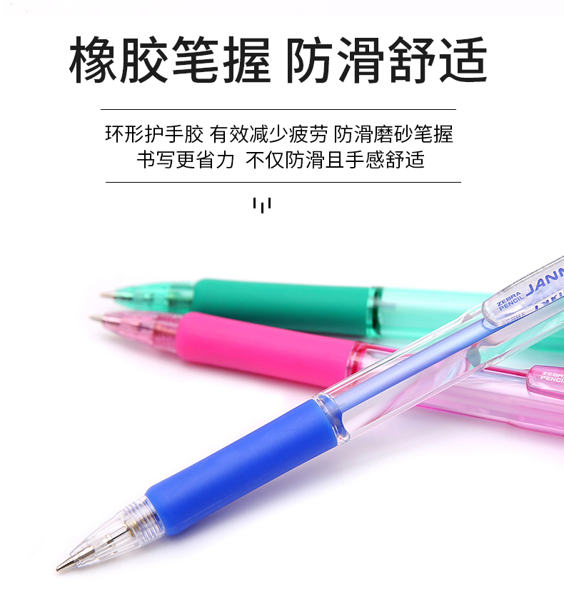 日本ZEBRA斑馬自動鉛筆KRM-100兒童小學生用彩色透明桿寫不易斷芯活動鉛帶橡皮擦頭繪畫美術鉛筆