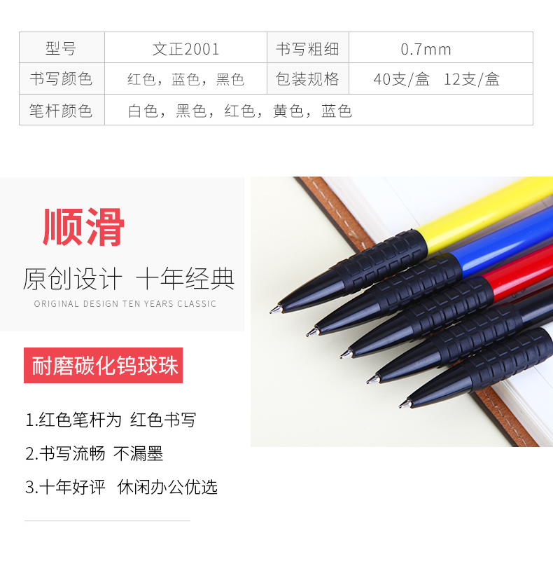商品名稱:文正圓珠筆紅藍黑色筆芯0.7mm原子筆批發(fā)教師學(xué)生辦公用按動油筆 2001