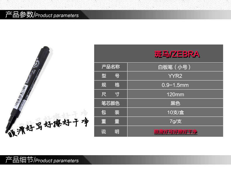 商品名稱:ZEBRA斑馬小白板筆 細(xì)字白板筆 小號 YYR2白板筆 速干不留痕