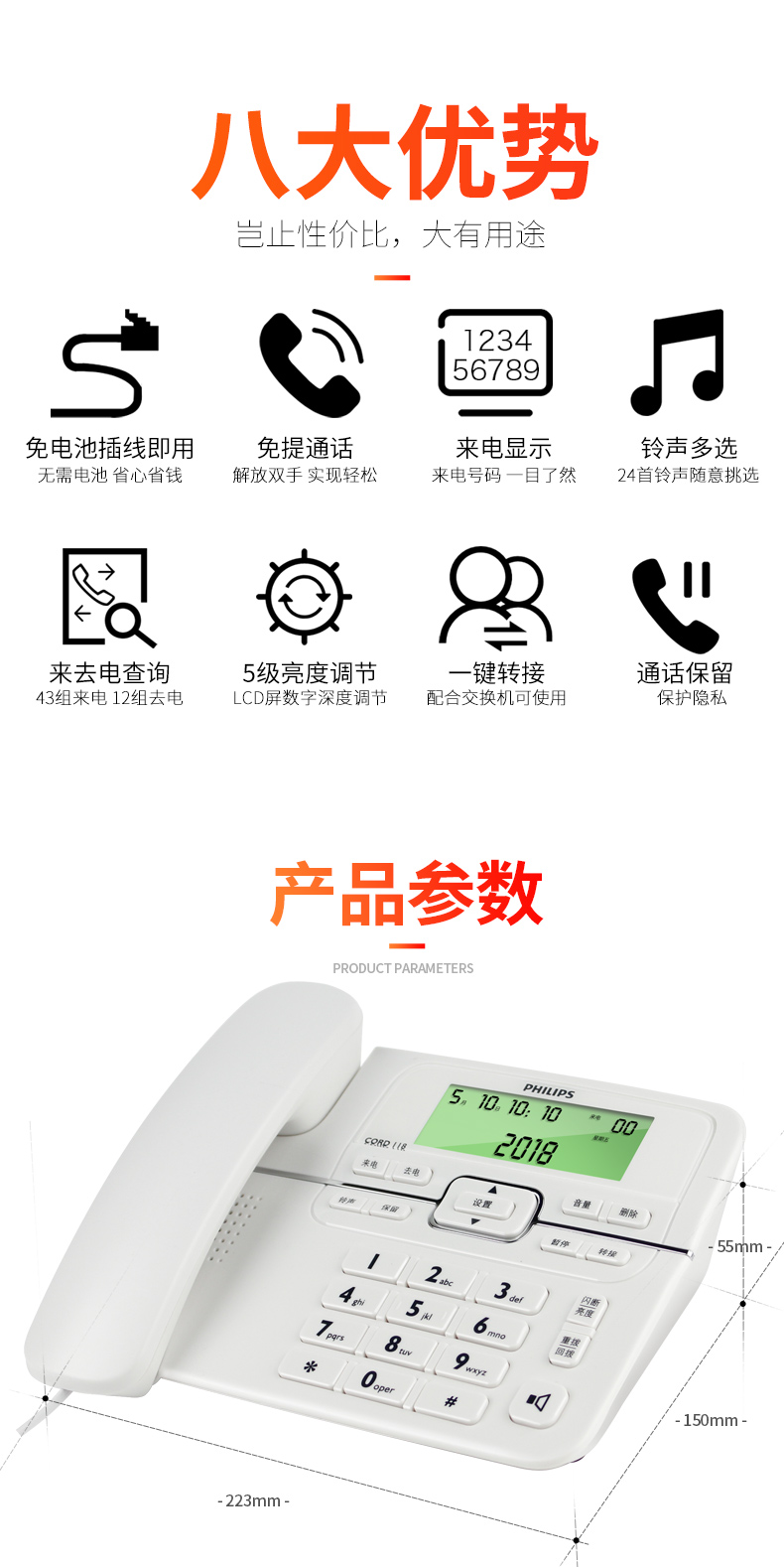 商品名稱:飛利浦臺(tái)式電話機(jī)