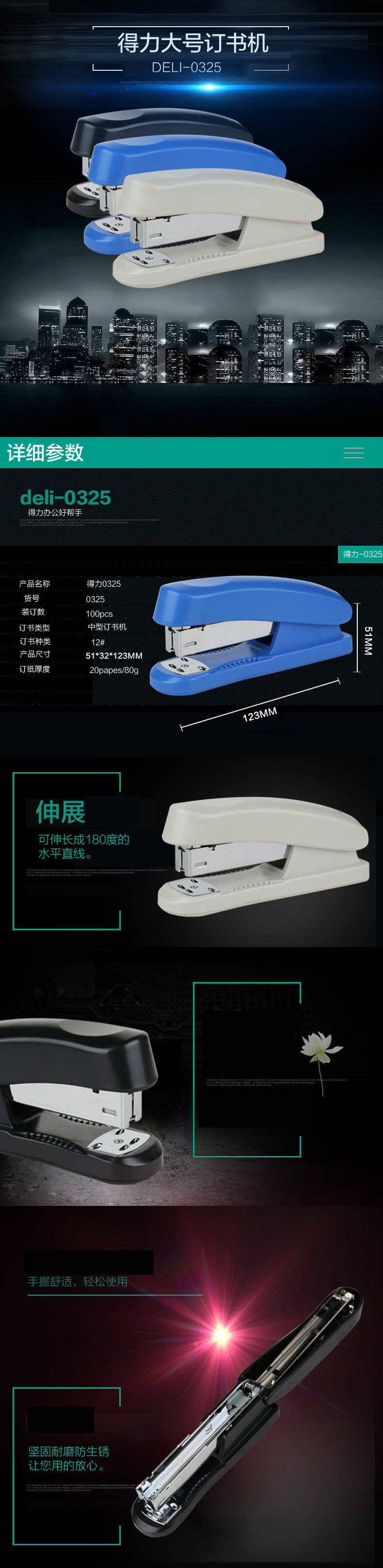 商品名稱:得力(deli)0325訂書機適合12號訂書針大號訂書器