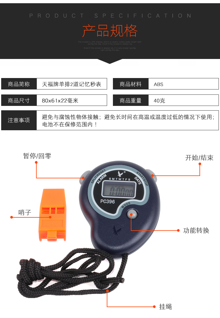 商品名稱:天福牌秒表